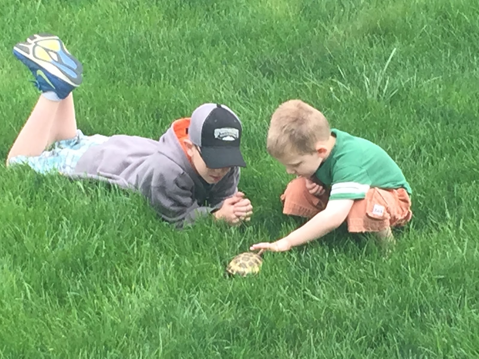 The boys talked us into a tortoise. We bought this little guy who is actually full grown and about 7 or 8 years old. He is a Russian Tortoise and they named him Bowser. He is so cute and fun.